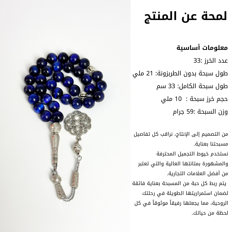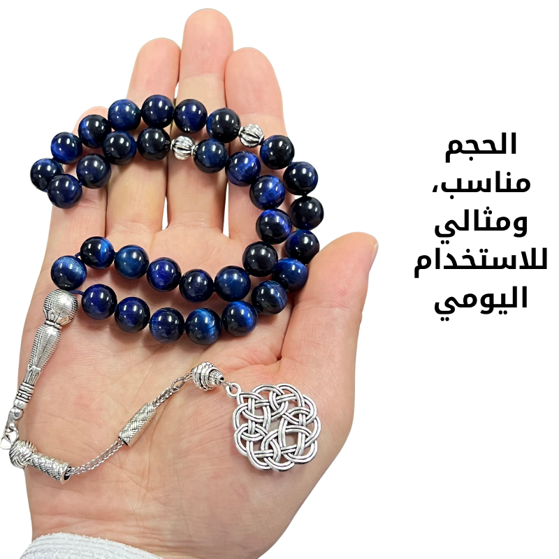 Premium Natural Blue Tiger Eye Stone Beads with Sterling Silver Tassel and Spacers, handcrafted by expert artisans - 33 beads - 10 mm